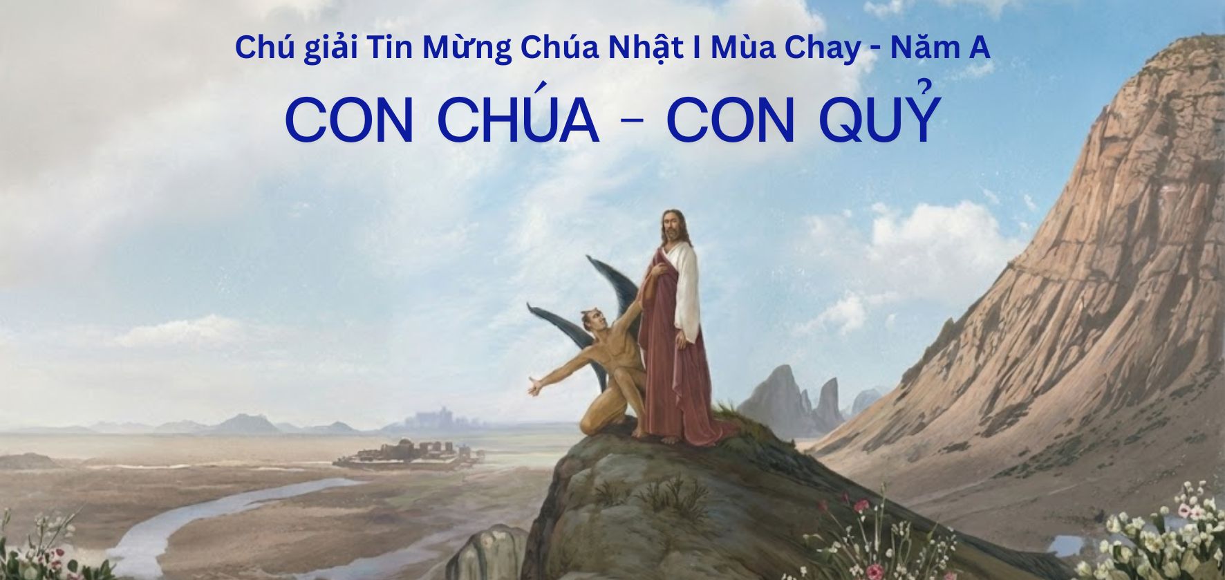 Đức Giêsu, ở trong vị trí hiện tại, vừa mới được Thiên Chúa công bố là “Con trai yêu quý” và được Thánh Linh ngự xuống như chim bồ câu (Mt 3,13-17), được dẫn vào hoang địa để chịu thử thách (Mt 4,1-11). Người cũng đang ở bên thềm của hành trình rao giảng. Đức Giêsu cần chứng tỏ vị thế, phẩm chất của Người Con yêu dấu và là sứ giả Tin Mừng của Chúa Cha. Hành trình trong hoang địa bốn mươi ngày quả là một hành trình đầy cam go, nhưng cần thiết. Nơi hoang địa có Chúa, có Thánh Linh dẫn dắt, nhưng cũng có quỷ, tên cám dỗ, Satan, mưu mô, quỷ quyệt. Nó biết dùng Lời Chúa một cách khéo léo, để buộc Đức Giêsu phải rơi vào chước cám dỗ. Hành trình hoang địa là hành trình xưa dân Israel đã đi và đã có nhiều kinh nghiệm thất bại. Họ kêu trách, phàn nàn, thoái lui khi thiếu bánh ăn, nước uống. Họ chạy theo tà thần “thờ bê vàng” thay vì thờ Chúa, Thiên Chúa, Đấng đã dẫn họ ra khỏi đất Ai Cập. Họ thách thức Chúa thỏa mãn, cung ứng những nhu cầu thể xác, giải thoát khỏi mọi cơn nguy khốn. Israel được gọi là “Con Đầu Lòng” của Chúa, Đức Giêsu được giới thiệu là “Con Thiên Chúa”. Con Thiên Chúa thuộc thế hệ hành trình hoang địa đã thất bại trong những cơn thử thách. Con Thiên Chúa, Con yêu dấu, Đức Giêsu đã chứng tỏ sự trung thành, tín thác, và yêu kính một mình Thiên Chúa. Sau khi nhịn chay bốn mươi ngày bốn mươi đêm, Người cũng đói như bao người, như dân Israel xưa trong hoang địa. Người có khả năng biến đá thành bánh, bằng chứng là Người có thể hóa bánh ra nhiều cho hơn 5000 người ăn no nê, nhưng Người đã không thỏa mãn cơn đói của chính mình. Thứ nhất, vì đó là thử thách của quỷ. Thứ hai, Người xác tín rằng Lời Chúa, giáo huấn của Chúa mới mang lại cho người ta sự sống đích thực và vĩnh cửu. Người ta không chỉ có sự sống thể lý mà còn có sự sống tinh thần, sự sống của linh hồn bất tử, sống theo thánh ý Chúa. Thứ ba, Người dám tín thác nơi Chúa hoàn toàn, thay vì cậy vào sức riêng của mình. Trong những cơn hoạn nạn, khốn khó của hành trình sa mạc, dân Israel xưa đã thử thách Chúa, đòi Chúa phải chứng minh về sự hiện hữu và quyền năng của Người qua sự giải thoát, ứng cứu kịp thời. Dân Do Thái thời Đức Giêsu cũng nhiều lần đòi Đức Giêsu làm dấu lạ để chứng tỏ uy quyền của Con Thiên Chúa. Tuy nhiên, Đức Giêsu sẵn sàng đón nhận đau khổ, bước đi hành trình thập giá cho đến cùng. Mặc cho quỷ xúi giục lao mình xuống từ nơi cao nhất của đền thờ, mặc cho dân chúng, thách thức, xúi giục Người xuống khỏi thập giá, Đức Giêsu vẫn một mực vâng phục đến cùng. Con Thiên Chúa, trong thân phận con người, chắc chắn thiếu thốn đủ điều, không tiền của, không địa vị xã hội, không vinh quang danh dự, thua cả quỷ nữa. Chính vì vậy, quỷ xúi giục phản bội, bất trung, tôn thờ quỷ để được vương quyền và vinh quang thế gian. Đức Giêsu không màng đến chức quyền, địa vị và vinh quang lợi lộc trần gian. Người rao giảng một “Nước Trời” (Nước Thiên Chúa), trong đó những người lớn nhất trở thành người phục vụ người nhỏ hơn; Trong đó, sự trao ban cách quảng đại, trở thành phúc lành hơn là sự tham lam thu tích, chiếm hữu. Đức Giêsu đã vượt qua tất cả những cơn thử thách của thế hệ hoang địa xưa. Người vượt qua tất cả những cám dỗ về danh, lợi, thú, và nỗi sợ hãi đau khổ, để chứng tỏ mình là “Con Thiên Chúa” đích thực, xứng đáng làm người giảng dạy, dẫn dắt dân mới vào Nước Trời. Những thử thách Đức Giêsu chịu trong hoang địa báo hiệu cho những thử thách trong suốt hành trình rao giảng của Người và sẽ được hoàn tất trong hành trình thương khó. Cái kết của trình thuật, tạm gọi là “những cơn thử thách của Con Thiên Chúa” (Mt 4,1-11), cũng báo trước cái kết của hành trình rao giảng, thương khó – phục sinh của Con Thiên Chúa làm người. Sau khi Đức Giêsu chiến thắng cả ba lần thử thách, tượng trưng cho mọi loại thử thách, “các sứ giả đến và hằng phục vụ Người.” “Các sứ giả” của Chúa sẽ “nâng bạn trên những bàn tay, để chân bạn khỏi vấp vào đá”, như lời trích dẫn của quỷ trước đó. “Các sứ giả” cũng cung ứng tất cả những nhu cầu bánh ăn, nước uống vì Đức Giêsu đã từ chối biến đá thành bánh. Động từ “phục vụ”, theo nghĩa hẹp là phục vụ bàn ăn, phục vụ bàn thờ, chăm sóc người nghèo, người đau khổ, nhưng theo nghĩa rộng là phục vụ bất cứ nhu cầu gì. Hơn nữa, động từ này được dùng ở thì “chưa hoàn thành” (imperfect), mô tả sự dài lâu của hành động phục vụ. Đức Giêsu đã chứng tỏ mình là Con Thiên Chúa, khi Người loại bỏ quỷ để chỉ tín thác noi Chúa và phụng sự một mình Người ma thôi.