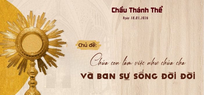 Lạy Chúa Giêsu Thánh Thể, Chúa là nguồn sự sống, là Đấng làm việc liên lỉ để cứu độ chúng con. Chúng con xin dâng lời tạ ơn vì tình yêu và sứ mạng của Chúa, vì Chúa đã ẩn mình trong tấm bánh để ở lại với chúng con. Xin cho chúng con biết trân trọng giờ chầu này, biến nó thành nguồn sức mạnh để chúng con sống chứng nhân, loan báo Tin Mừng về sự sống đời đời. Xin cho chúng con trở thành những người mang Chúa đến cho thế gian, giúp nhiều linh hồn nghe tiếng Chúa và được sống. Amen.