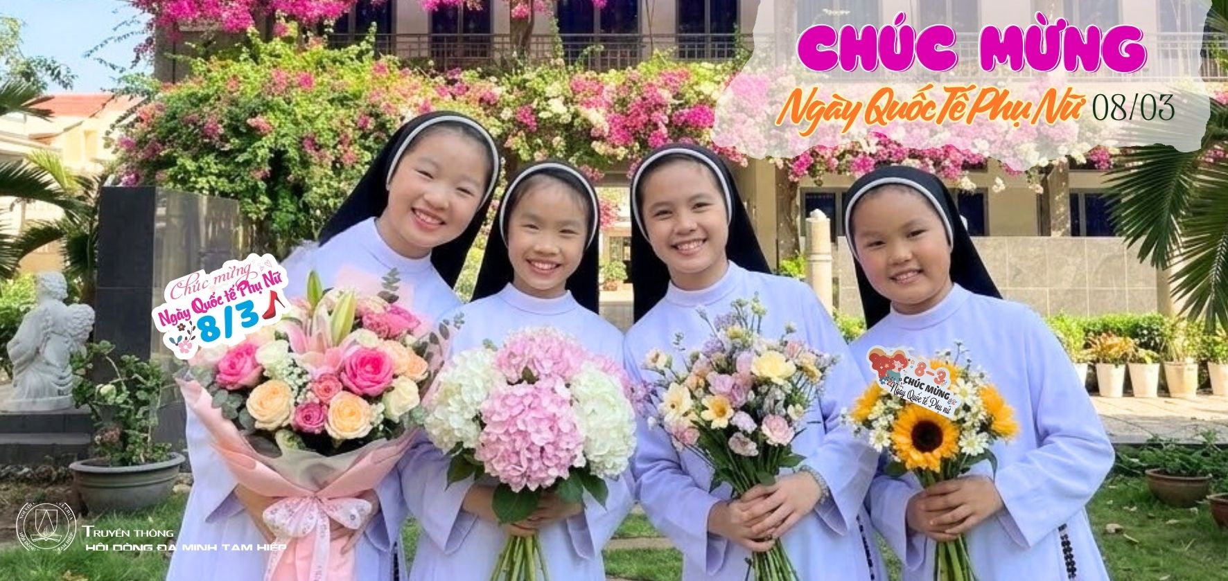 Mừng ngày Quốc tế Phụ nữ 8/3, chúng con xin kính chúc quý Sơ, quý Bà Cố, quý chị em, cùng tất cả những người phụ nữ trên khắp thế giới một ngày 8/3 tràn đầy niềm vui, bình an và hạnh phúc. Và có một cuộc đời luôn an vui, mạnh khỏe và chan chứa ân sủng của Chúa.